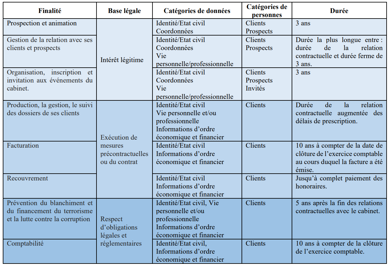 Les données traitées sont destinées aux personnes habilitées du cabinet, ainsi qu’à ses prestataires.